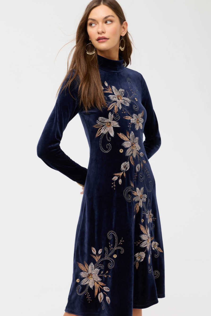 Stretch Velvet Mock Neck Dress